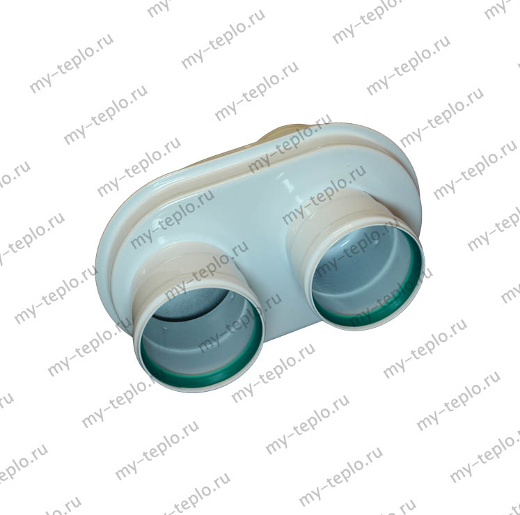Одноблочный адаптер для котлов Termica одевается непосредственно на котёл, и позволяет перейти на систему дымоудаления 80/80.
